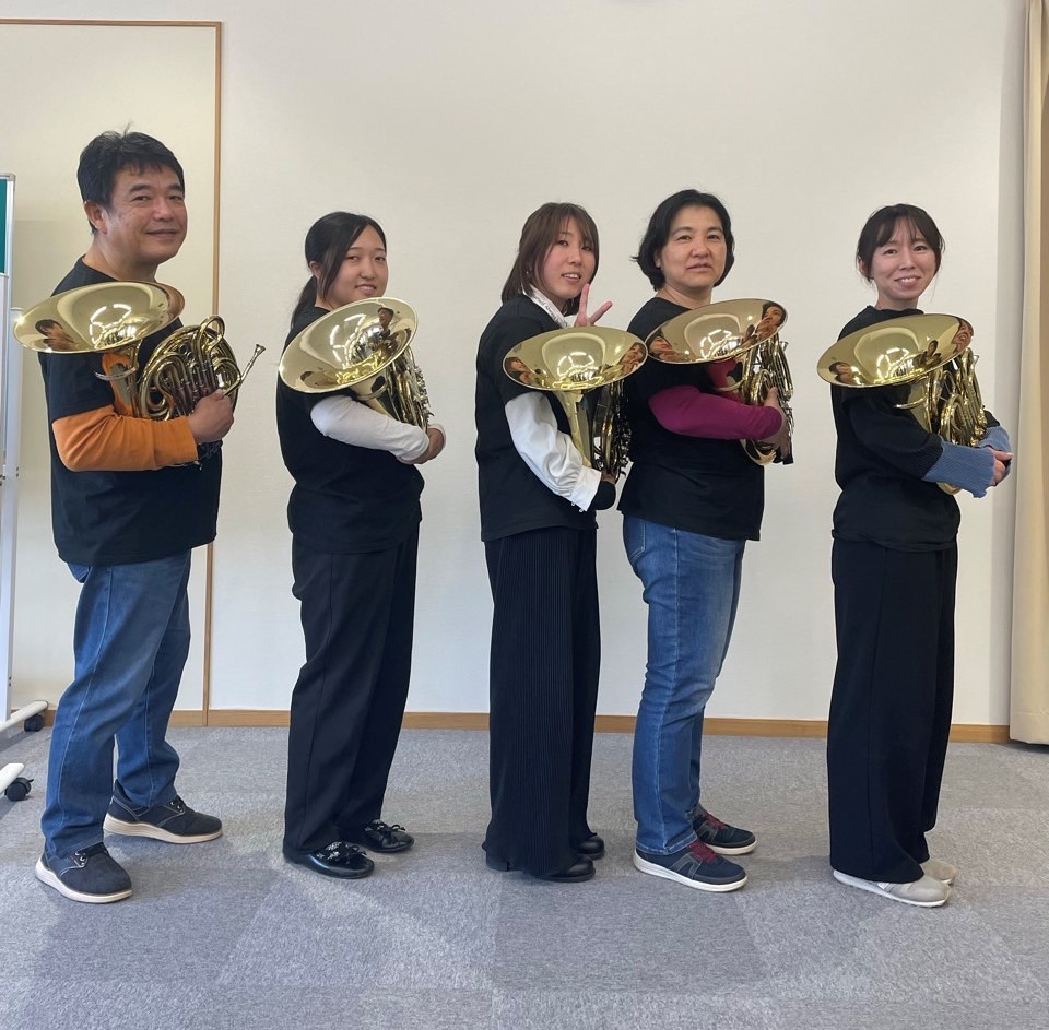 学生から還暦手前まで、学生時代から続けている者からブランク10年で再び楽器を手にした者まで、これまた幅広いメンバーがホルンと格闘しながら音楽を奏でています。