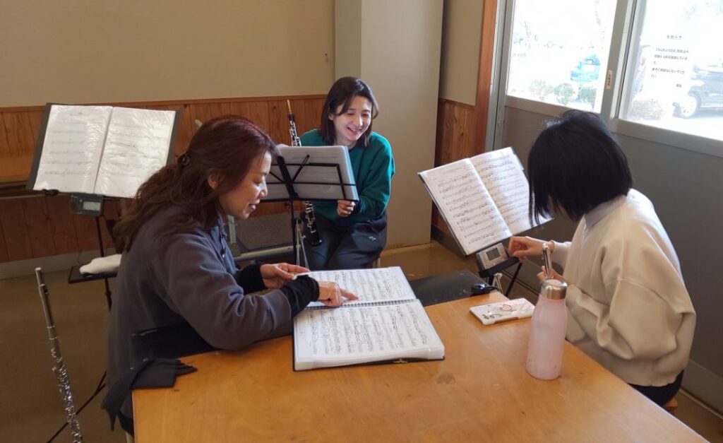 この日も第2回定期演奏会で披露する予定の曲を同じパートや動きの楽器で合わせて一緒に練習しました。