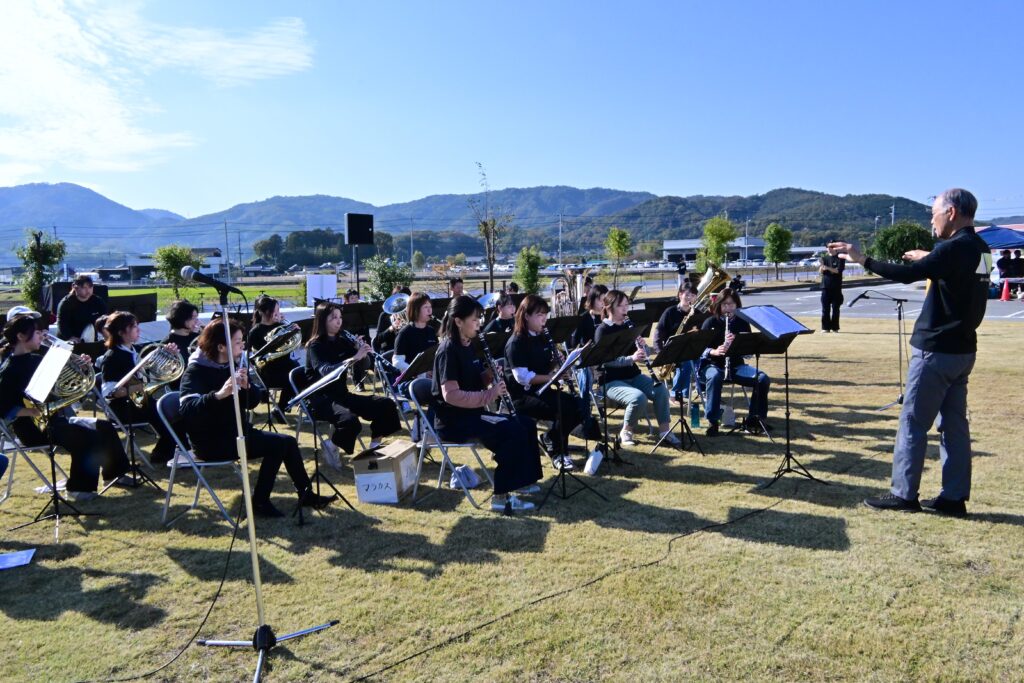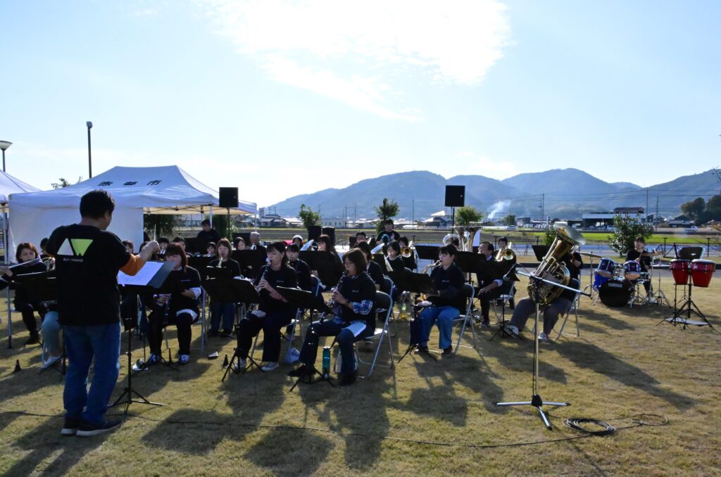 「今年も、暑いくらいの秋晴れの中での開催でした。買い物をしていると「今日は何時から?」「楽しみにしてるよ」と声をかけていただき嬉しかったです。赤磐の吹奏楽団として知名度が上がってきたような気がします。屋外では響きも違い、どんな演奏になっているのかドキドキでしたが、皆さん笑顔で聴いてくださりほっとしました。」などの感想がありました。