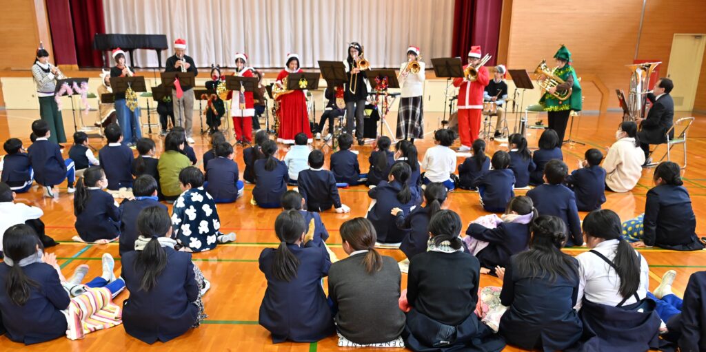 豊田小学校から芸術鑑賞会で演奏してほしいとご依頼をいただき、アンサンブル演奏をしました!